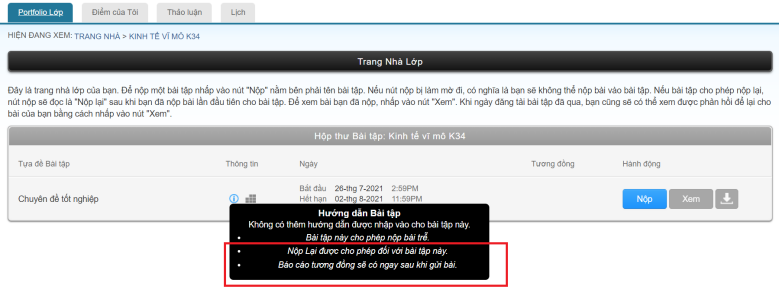 –> Tuy nhiên, sinh viên cần kiểm tra xem giảng viên có thiết lập chế độ ” Nộp lại được cho phép đối với bài tập này ” hay không ? trước khi tiến hành nộp bài lên hệ thống Turnitin