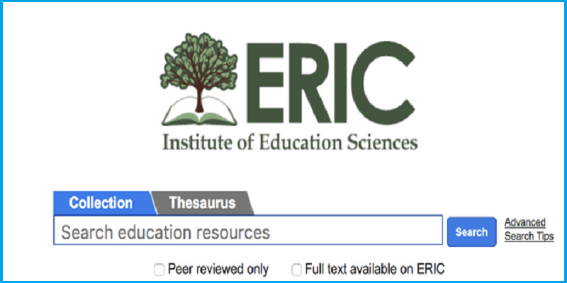 ERIC là một thư viện trực tuyến về nghiên cứu và thông tin giáo dục, được tài trợ bởi Viện Khoa học Giáo dục (IES) thuộc Bộ Giáo dục Hoa Kỳ. ERIC cung cấp truy cập đến hàng ngàn liên kết các tạp chí trên toàn thế giới thuộc nhiều lĩnh vực khác nhau. Người dùng có thể dễ dàng đọc trực tuyến hoặc tải về các bài tạp chí. Link truy cập: https://eric.ed.gov/ Link hướng dẫn tìm kiếm: https://eric.ed.gov/?advanced