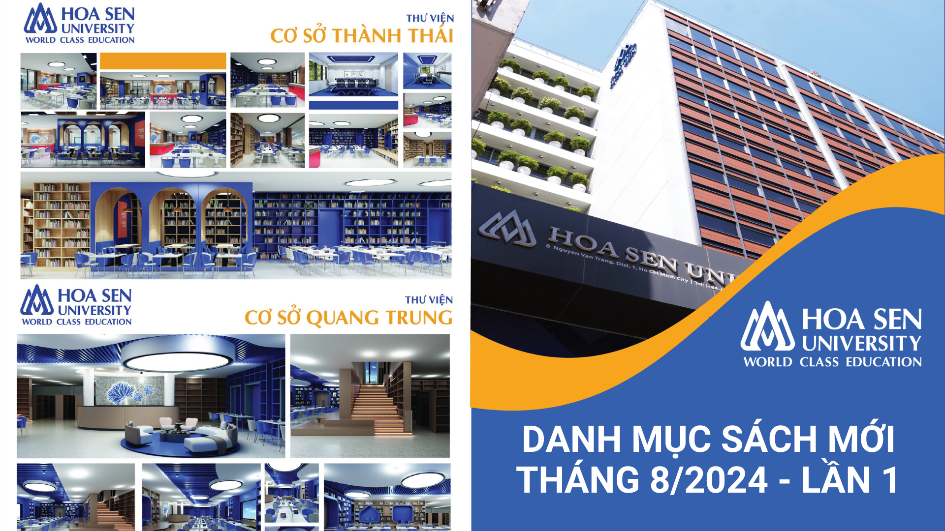 Hướng tới mục tiêu trở thành trường đại học đạt chuẩn quốc tế, đáp ứng nhu cầu đào tạo nguồn nhân lực chất lượng cao trong nước và thu hút sinh viên quốc tế, Trường Đại học Hoa Sen chính thức khởi công cải tạo cơ sở vật chất tại các cở sở nói chung và Thư viện nói riêng. Dự án bao gồm nâng cao tiện ích, dịch vụ sinh viên như: café sách tại thư viện Quang Trung, thư viện Thành Thái, khu vực thư giãn sau giờ học, gia tăng mảng xanh, cảnh quan xung quanh, đầu...